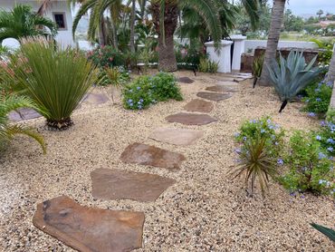 The client in La Jolla wanted to update the current tropical landscape with a Xeriscape landscape to save on water. We removed the Tropical garden, designed, scaped, and planted a new desert landscape for the client. The job also included an entirely new water saving irrigation system.