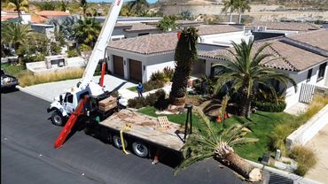 The client required the removal and replacement of a Canary Island date palm. We removed the old palm and planted a fully mature date palm in the front yard with the use of a crane.